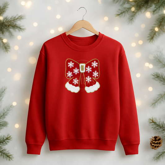 Red Snowflake Bow Chenille Embroidered Sweatshirt