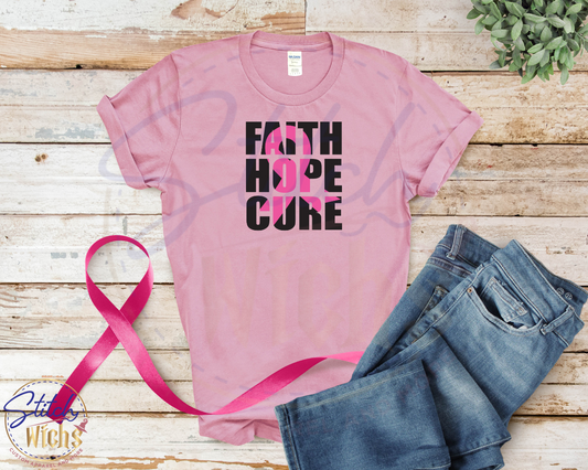 Faith Hope Cure Breast Cancer Awareness Tee