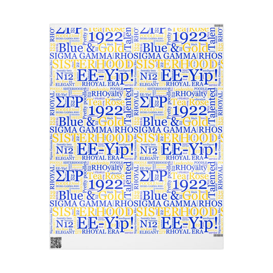 Sigma Gamma Rho Blue & Gold Sisterhood Wrapping Paper β '1922 EE-Yip!' Word Cloud Gift Wrap