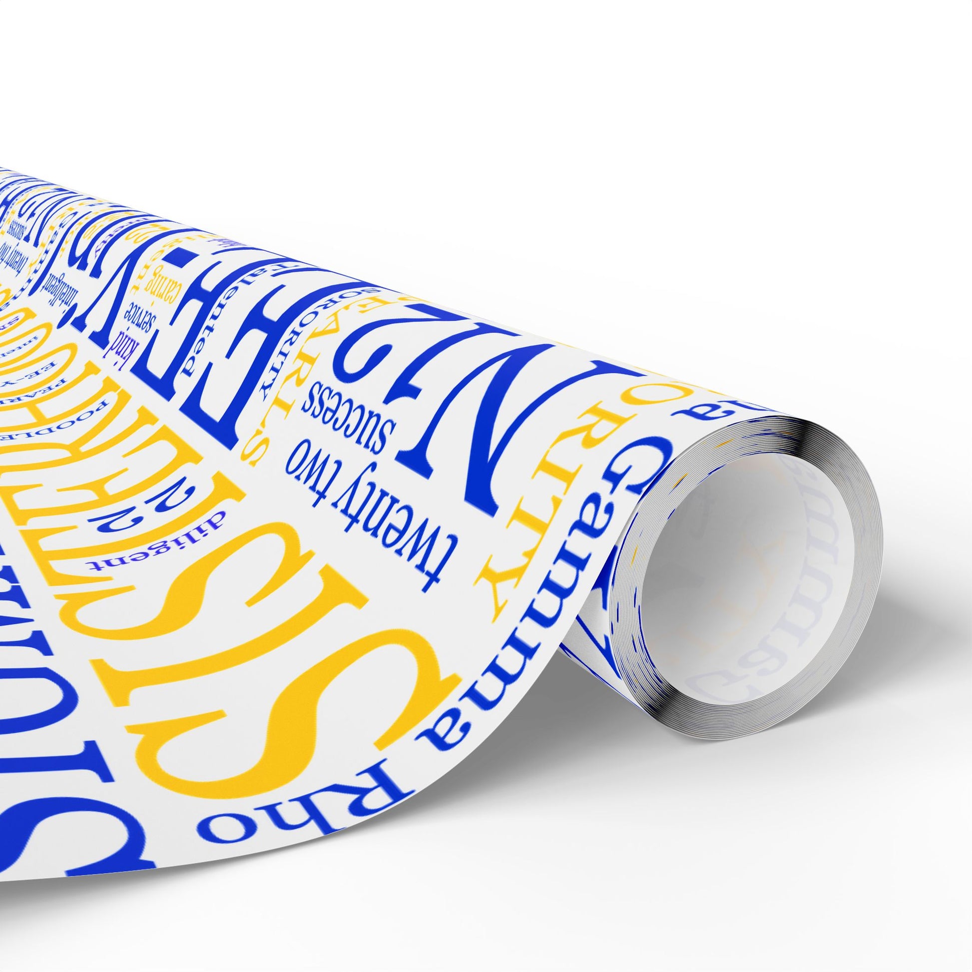 Wrap your gifts in Blue & Gold style with our Rhoyal Sisterhood Word Cloud Wrapping Paper. This bold design features meaningful Sigma-inspired words like “Sisterhood,” “Tea Rose,” “1922,” and “RHOyal Era,” creating a vibrant and celebratory look for any occasion.