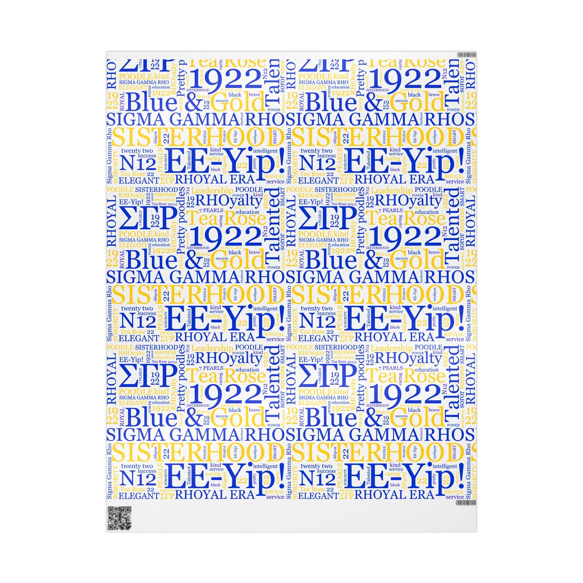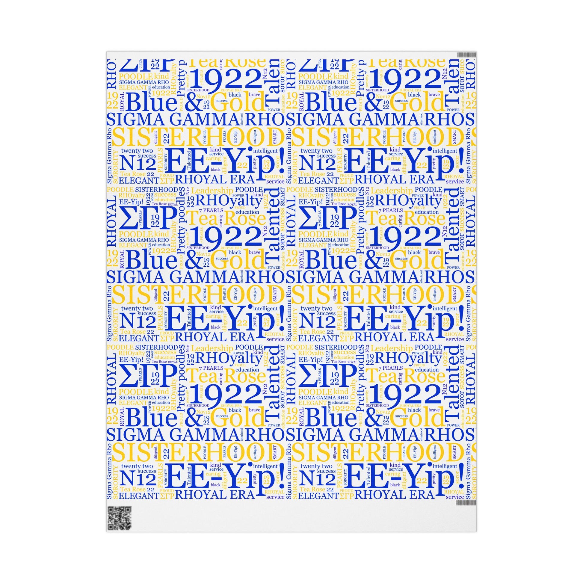 Sigma Gamma Rho Blue & Gold Sisterhood Wrapping Paper — '1922 EE-Yip!' Word Cloud Gift Wrap
